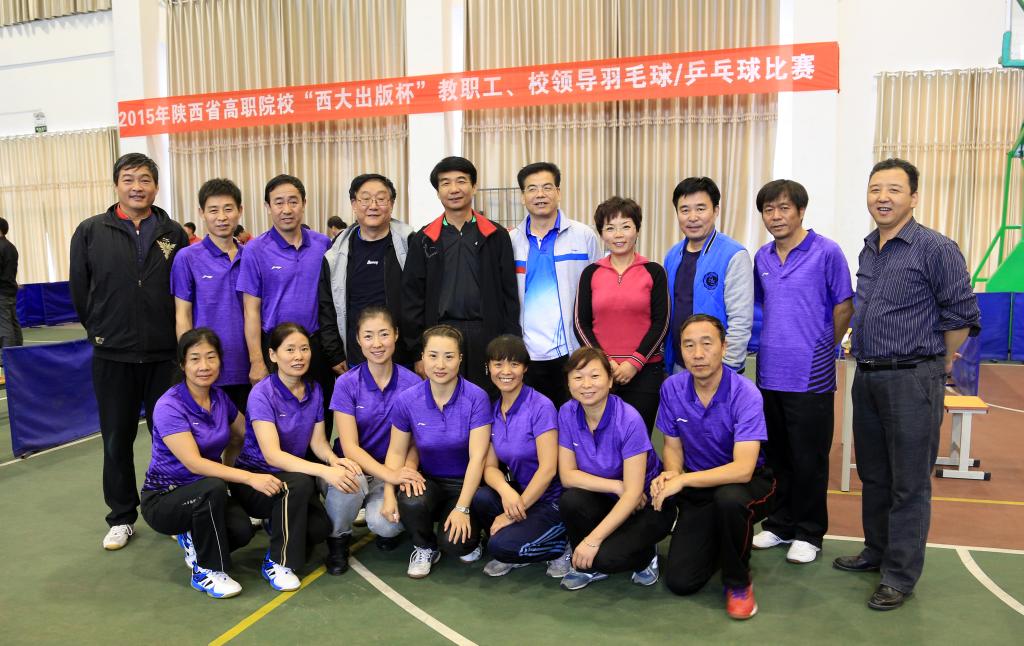 ,2015年陕西省高职院校“西大出版杯”教职工、校领导羽毛球/乒乓球比赛在西安航空职业技术学院举行。我院党委书记崔岩,党委副书记、纪委书记刘永亮等7人组成的校领导队和羽毛球协会张绪绪、吕宏、张辉、宋群芳等14人组成的教职工队参加了相应组别的比赛。经过两个阶段的奋力拼搏,夺得教职工组第四名和校领导组第五名的好成绩,代表队领队、工会主席刘文青代表学院领奖。