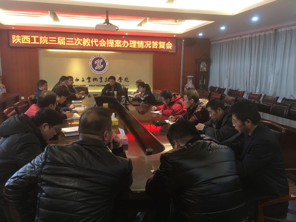 会上,黎炜同志通报了三届三次教代会提案办理情况:学院三届三次教代会共立案16个,经过梳理汇总,涉及学院立德树人、师资队伍建设、教育教学改革、校园基础设施、宣传和科技成果转化等多个方面,根据提案内容归口落实了人事处、教务处、学生处等8个承办部门。人事处副处长薛医贵、教务处教务科科长舒蕾、后勤处副处长杨修国、学生处副处长张翔、宣传部副部长张彬等分别对16个提案的落实情况一一详细答复,对提案办理过程中出现的问题进行了具体说明,并与提案人充分交换了意见。提案人对答复不清楚的地方再次做了质询,提案人与承办部门负责人进行了全面细致的沟通与交流,最终所有提案人对提案落实情况表示满意,做到了三届三次教代会提案事事有着落、件件有交代。