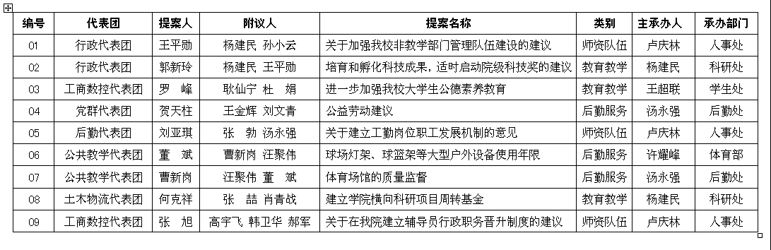 12月28日,学院教代会提案审查落实委员会公布了三届三次教代会优秀提案评选结果,以下9个提案被评选为优秀提案: