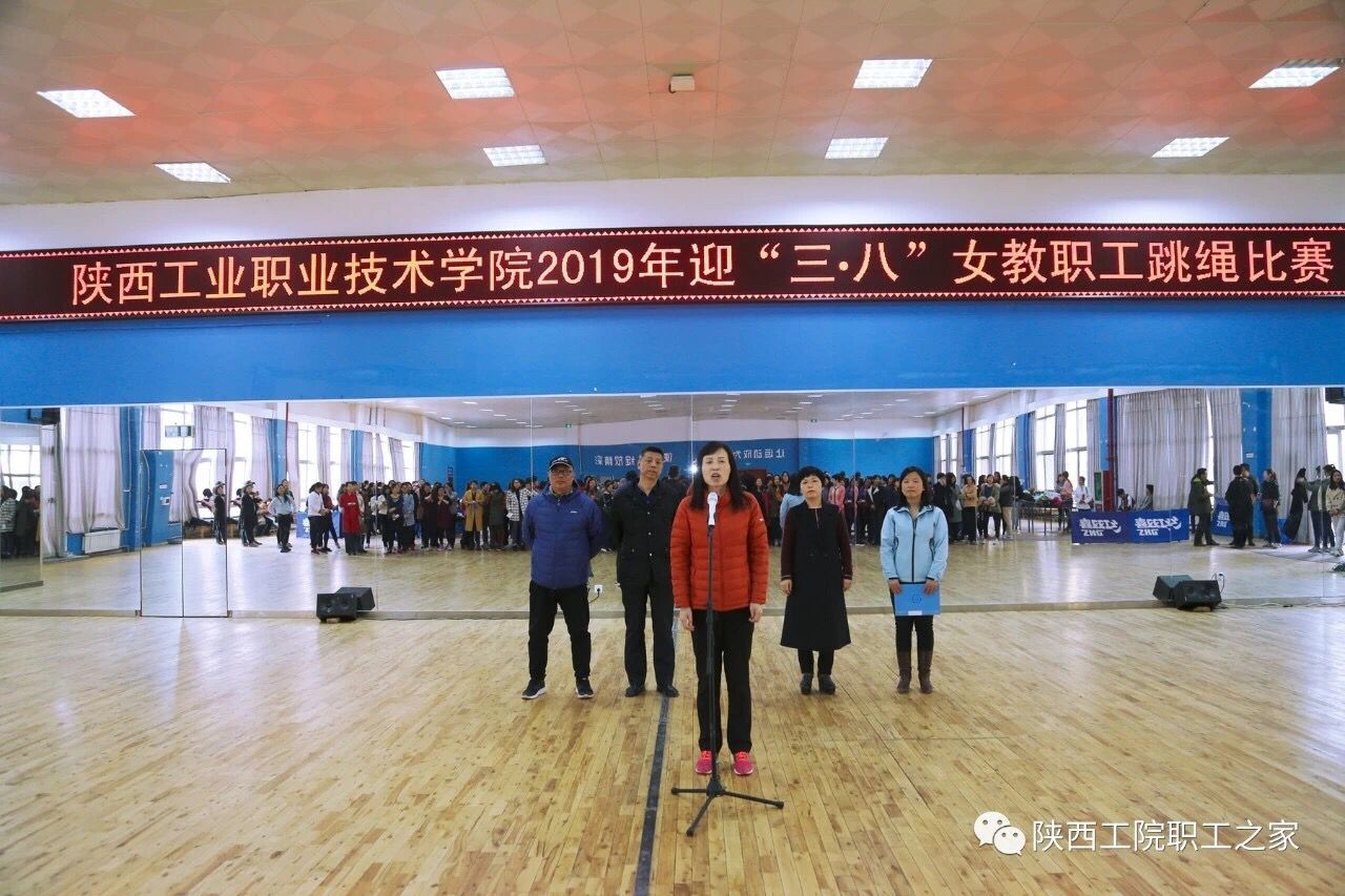比赛开始前,女教职工旗袍协会出演了精彩的旗袍秀,展示了女教职工的唯美风韵。工会女工委员会主任孙小云发表热情洋溢的讲话,庆祝第109个国际劳动妇女节的到来,祝愿全院女教职工节日快乐,并希望通过比赛促进各分会之间、教职工之间的交流,增进友谊,倡导快乐工作,健康生活的理念。工会女工委员段文洁宣读了比赛规则。总裁判长郭阳代表裁判员宣誓。工会主席刘文青宣布,陕西工院2019年迎“三·八”女教职工跳绳比赛开始。