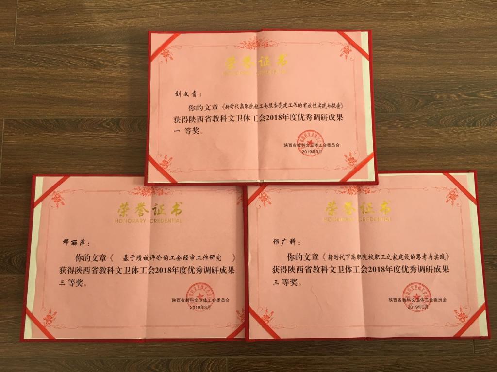 八年来,院工会持续加大工运理论研究工作的支持力度,在成立陕西工院工运理论研究会的基础上,广泛动员,大力号召院工会委员、各分会主席和委员、各专门委员会主任和委员,乃至普通教职工会员积极投身工运理论研究工作。学院工会每年组织院工会委员构成的评审团从课题或论文选题、调研成果和论文撰写、框架结构设计、乃至成文格式等方面全面支持、全程指导。2018年在全院范围内遴选出8篇工运理论研究成果上报省教科文卫体工会参评,最终3篇获奖。工会主席、统战部长刘文青撰写的工运调查报告连续八年荣获省教科文卫体工会优秀理论调研成果奖,此次撰写的《新时代高职院校工会服务党建工作的有效性实践与探索》获评一等奖,为全省高职院校工会工作提供了经验和借鉴。财务处长撰写的《基于绩效评价的工会经审工作研究》,工会祁广科老师撰写的《新时代下高职院校职工之家建设的思考与实践》,角度各异,对工会工作有较强指导意义,同获优秀调研成果三等奖。
