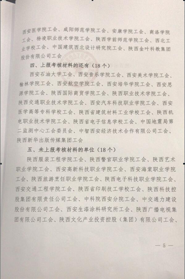 据悉,省教科文卫体工会经审委依据《陕西省教科文卫体工会经审工作考核办法》对64个直属工会2018年度工作进行了考核评比,评出优秀等次15个,良好等次19个,基本合格等次12个。同时还通报了18个未上报考核资料的基层工会。