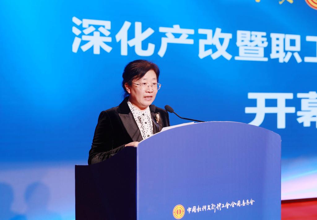 党委书记惠朝阳在致辞中表示,职业院校是建设高素质产业工人队伍、助推产改的核心要素。近年来,陕西工业职业技术学院以“产改”试点单位建设为抓手,坚持“产教融合、校企合作、育训并举”,聚焦产教融合过程中产业与教育、学校与企业、育人与培训等难题,从“专项研究”赋能、“产业学院”驱动、“工匠学院”牵引等方面发力,探索了高职院校以工会组织为纽带引领产改的新路径,走出了一条具有陕工特色和装备制造业特质的职业教育集团化办学发展之路。今后,学校将继续以党建带工建为抓手,以产教深度融合为主线,探索创新学校工会在新时代促进经济社会发展与技能人才培养的新模式、新路径,形成“产改”工作陕工方案与经验,为建设制造强国、实现中国式现代化培养造就更多大国工匠和能工巧匠!