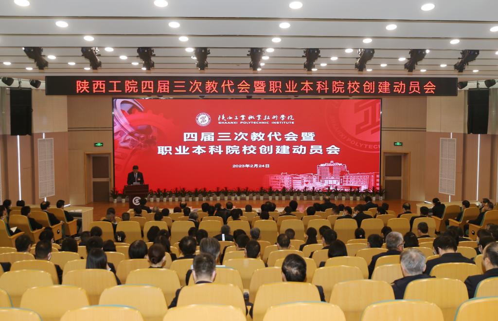 勇争第一 敢创唯一 全力实现“五个三”计划新胜利。春风浩荡征途新,战鼓铮铮催人进。近日,我校四届三次教代会暨职业本科院校创建动员会在渭城校区学术会堂隆重举行。党委书记惠朝阳作总结讲话,党委副书记、校长刘永亮代表学校作题为《守正创新真抓实干全面开启本科层次职业学校创建新征程》的行政工作报告。教代会正式代表124人、列席代表14人出席会议,会议由党委副书记贺天柱、田昊主持。