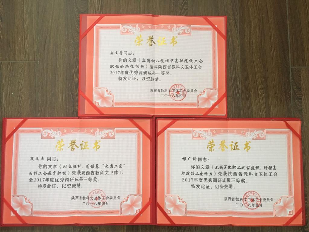,陕西省教科文卫体工会在全省教科文卫体系统工会女工干部培训班上,通报表彰了2017年度优秀调研成果和优秀调研单位的(陕科文卫体工字[2018]17号)。我院2017年工运理论研究硕果累累:工会主席、统战部长刘文青获优秀调研成果一等奖,段文杰和工会祁广科老师获优秀理论研究成果三等奖。刘文青同志出席培训开班仪式并代表学院上台领奖。至此,我院工运理论研究工作已经连续七年获得省教科文卫体工会通报表彰,这也是历年来我院工运理论研究工作获奖最多的一次。
